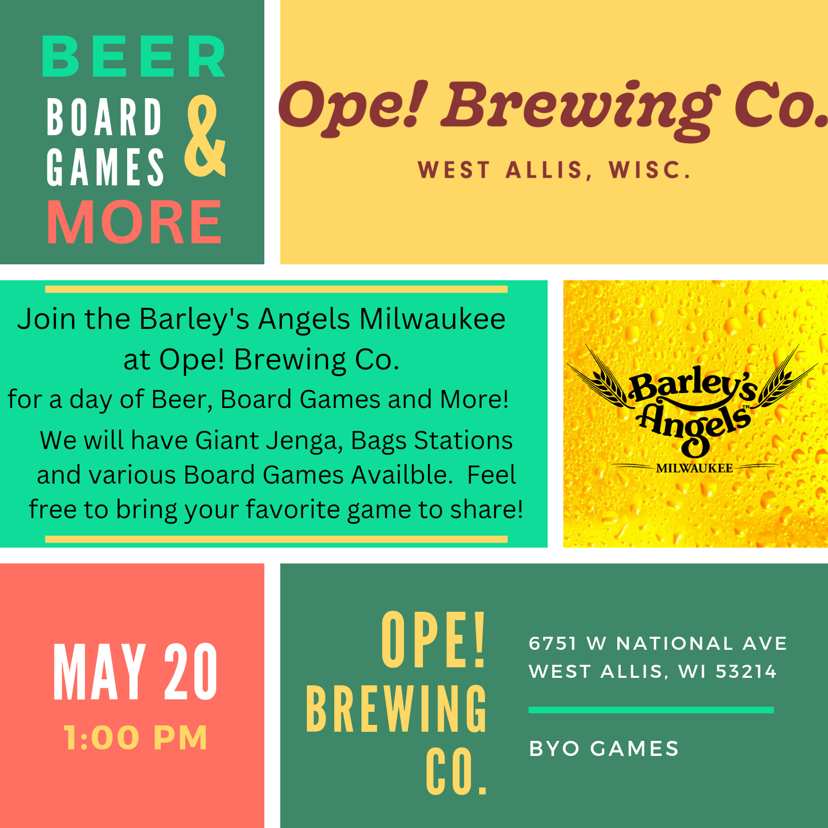Hey Angels! May’s monthly meeting will be at Ope! Brewing Co. on Saturday, May 20th, at 1pm. This is a make-up meeting we previously had scheduled for March that got snowed out! Let’s hope the weather cooperates this time!