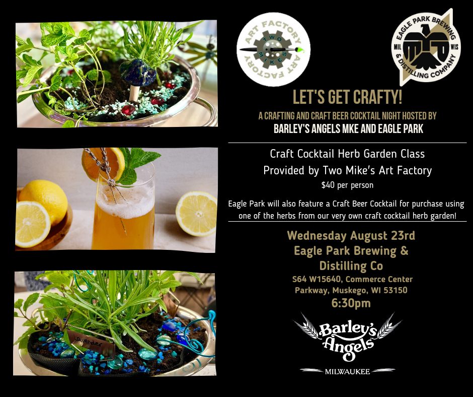Join Barley’s Angels Milwaukee along with Two Mike’s Art Factory and Eagle Park Brewing Co. for a night of crafting! We will be creating your very own Craft Cocktail Herb Garden! Eagle Park will also help us put the fruits of our labor to use by creating a Craft Beer Cocktail made with one of the herbs from our herb garden in a featured cocktail for the evening.